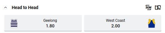 Tip: West Coast Eagles at $2.00