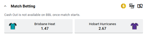 Tip: Brisbane Heat $1.47