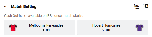 Bragging rights are on the line when cellar dwellers the Renegades and Hurricanes do battle in Melbourne this evening. We take a look at Tuesday’s (21/1/2020) BBL Big Bash 2020 match between Melbourne Renegades and Hobart Hurricanes and take a look at both teams odds and give our tips and value tips for the match.