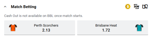 The 4-3 Heat sit outright third on the BBL ladder, while the 3-4 Scorchers are sixth.