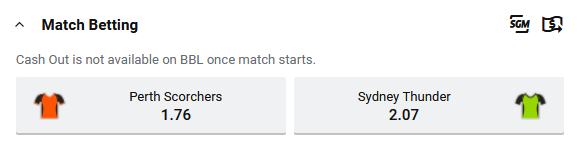 The Perth Scorchers have lost two games on the trot, but they will still go into this clash with the Sydney Thunder as clear favourites.