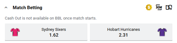 We take a look at Thursday’s (16/1/2020) BBL Big Bash 2020 match between Sydney Sixers and Hobart Hurricanes and take a look at both teams odds and give our tips and value tips for the match.
