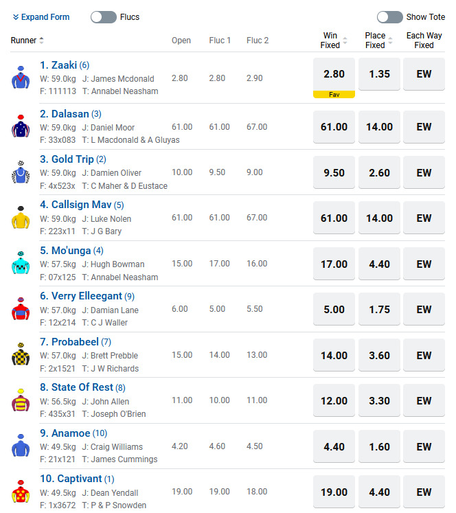 Cox Plate Odds: