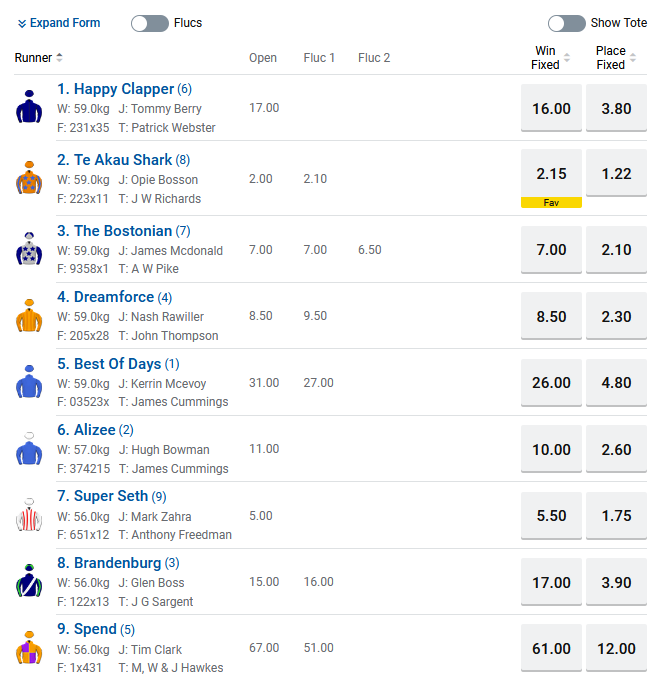George Ryder Stakes Tip: 2 Te Akau Shark at $2.15