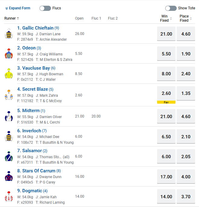 Mornington Cup Prelude Odds: