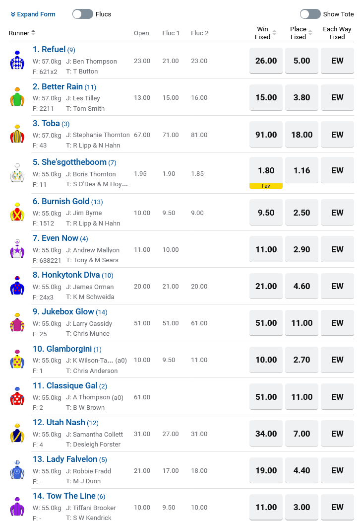 QTIS Jewel 2YO Odds:
