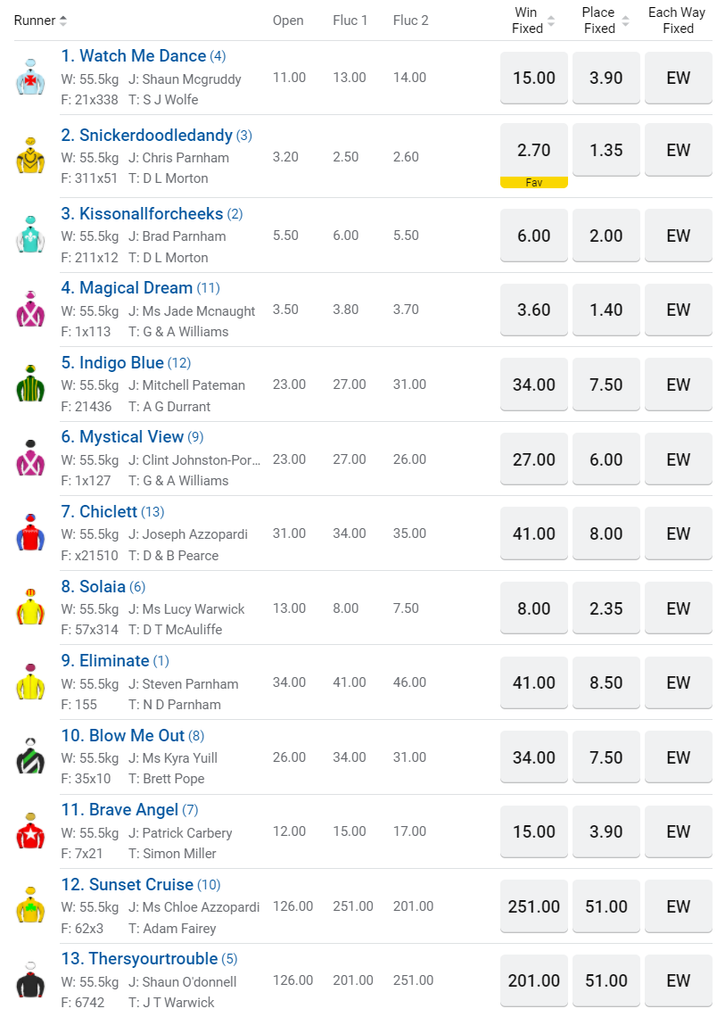 WA Champion Fillies Classic Odds: