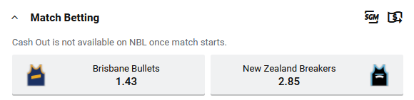 Tip: Brisbane Bullets at $1.43