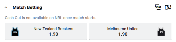 Tip: Melbourne United at $1.90