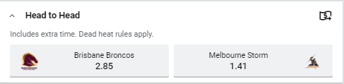 Melbourne were downed for the first time in 10 games, losing 11-10 to Manly in the dying moments of golden point. Suliasi Vunivalu is back on the wing in their only change, while Matt Gillett is back for the Broncos, but Tevita Pangai Jnr will miss through suspension.