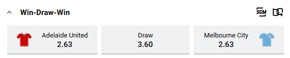 Correct Score: Adelaide United 2 – 1 at $9.50