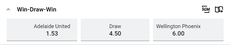 Correct Score: Adelaide United 2 – 1 at $7.00