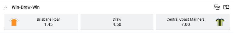 Correct Score: Brisbane Roar 2 – 1 at $7.00
