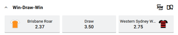 Correct Score: Brisbane Roar 1 – 0 at $10.00