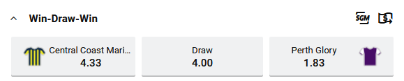Correct Score: Perth Glory 2 – 0 at $10.00