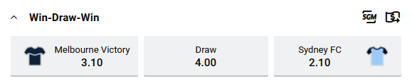 Correct Score: Sydney FC 1 – 0 at $10.00
