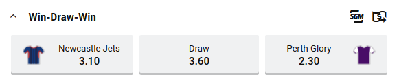 Correct Score: Perth Glory 1 – 0 at $9.50
