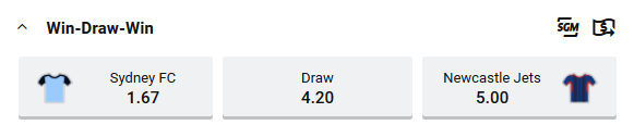 Correct Score: Sydney FC 2 – 0 at $9.00