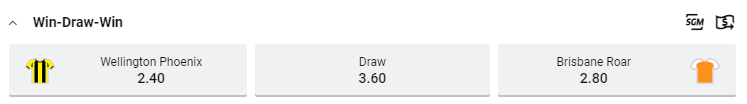 Correct Score: Wellington Phoenix 2 – 1 at $9.00