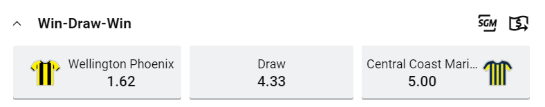 Correct Score: Wellington Phoenix 1 – 0 at $10.00