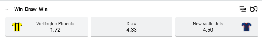 Correct Score: Wellington Phoenix 2 – 0 at $10.00