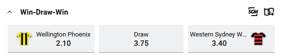 Correct Score: Wellington Phoenix 1 – 0 at $10.00