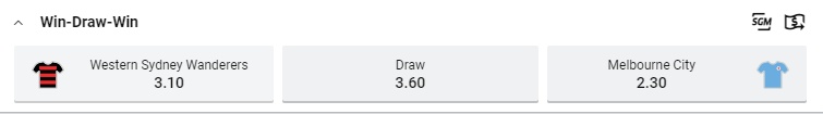 Correct Score: Melbourne City 1 – 0 at $10.00