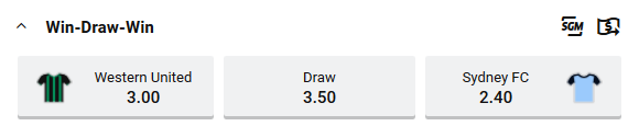 Correct Score: Sydney FC 1 – 0 at $8.50